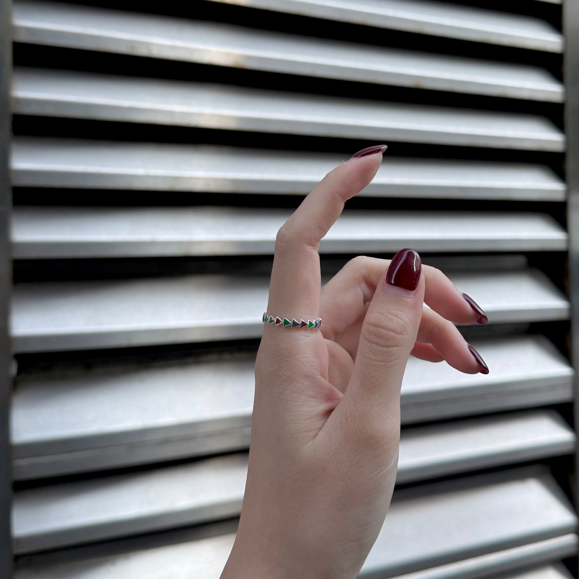 小さなトライアングルが可愛いらしいエタニティーリング。