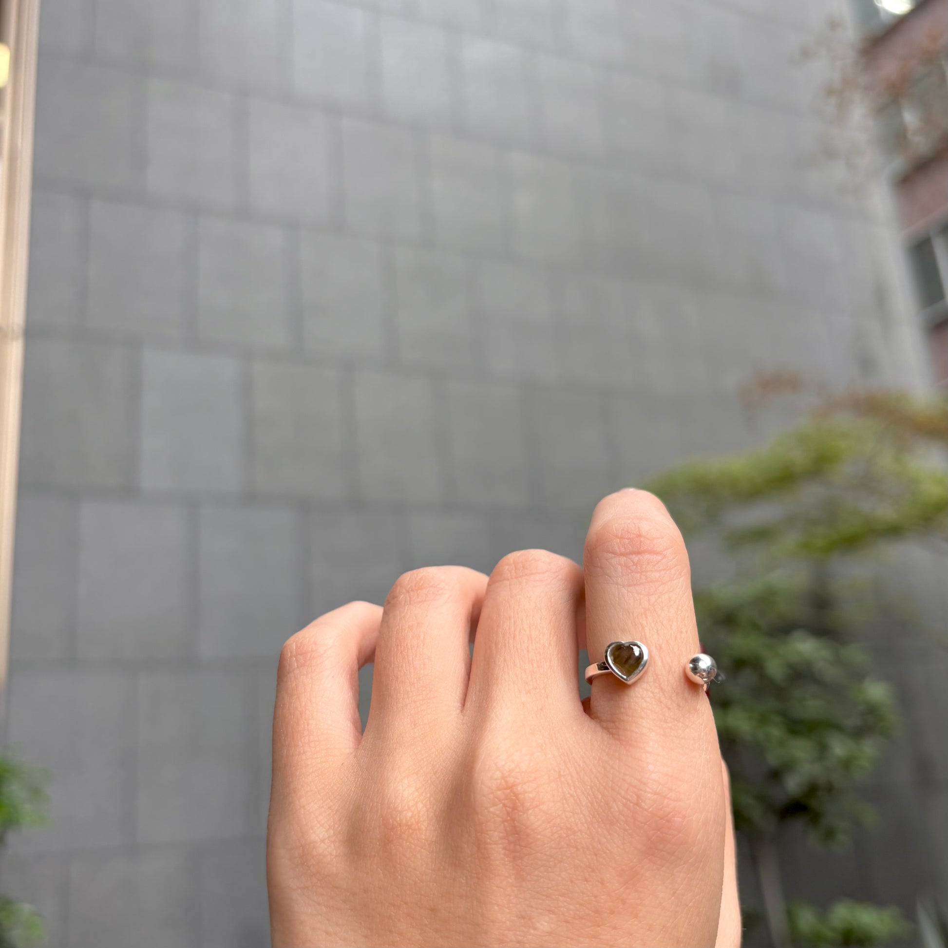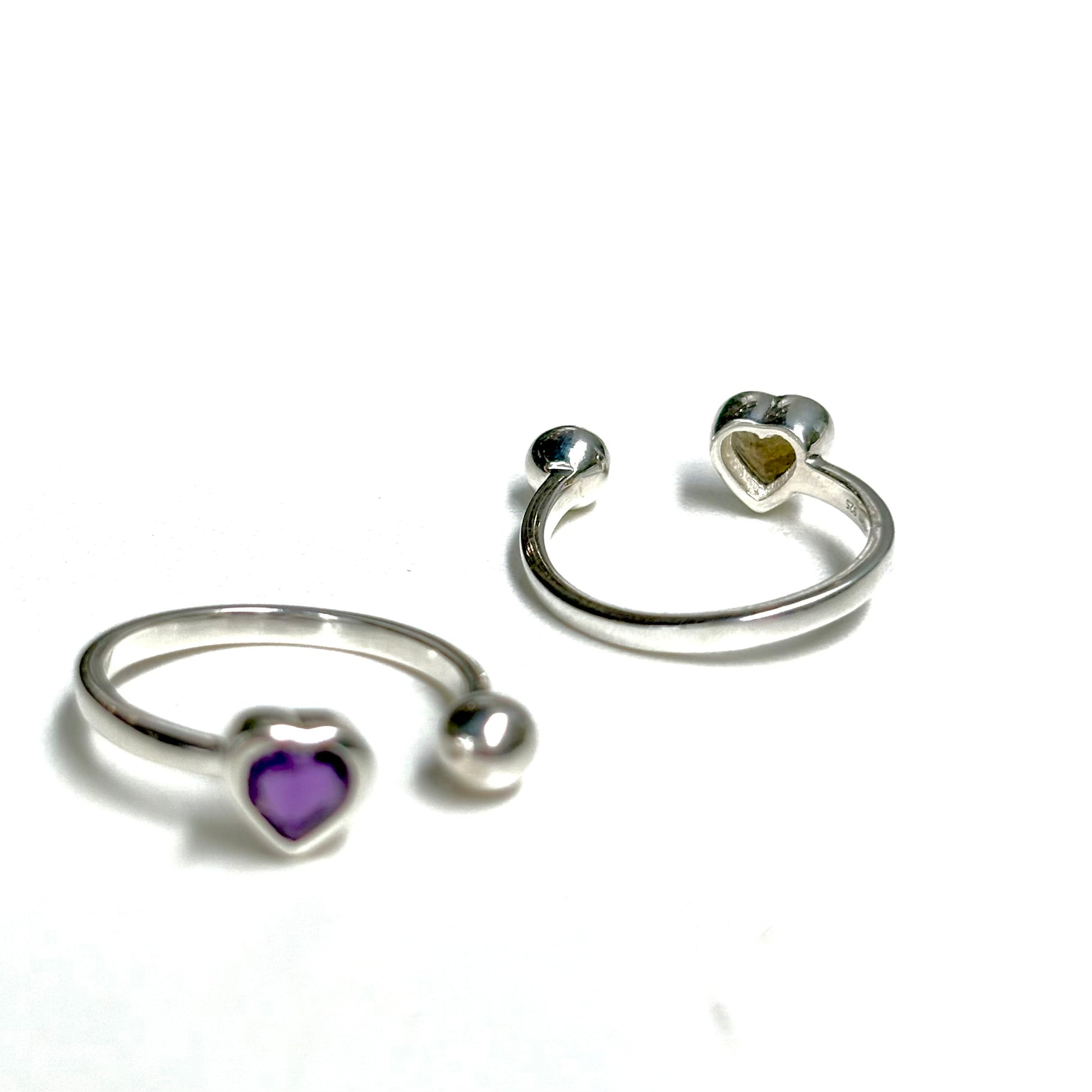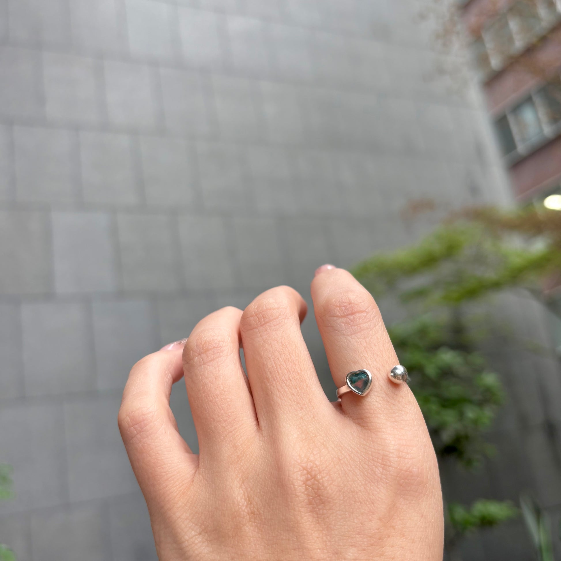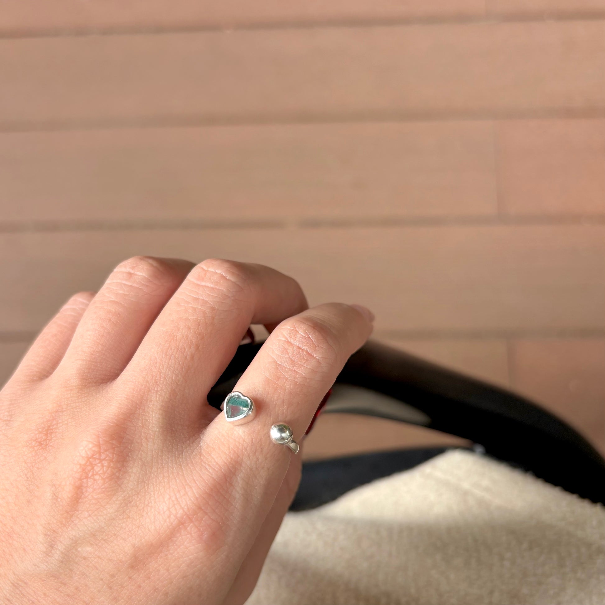 ハート型天然石 × ボールのフォークリング。