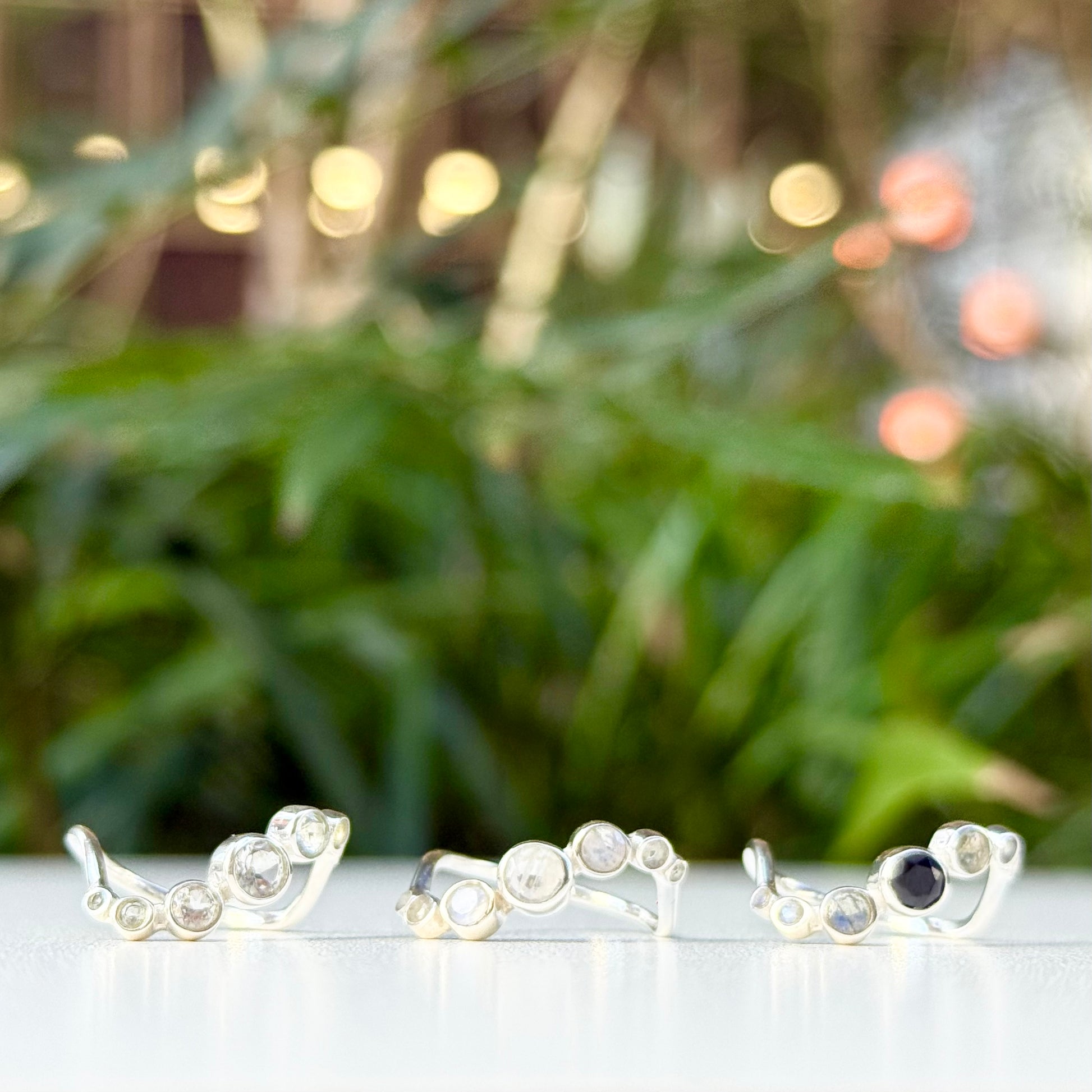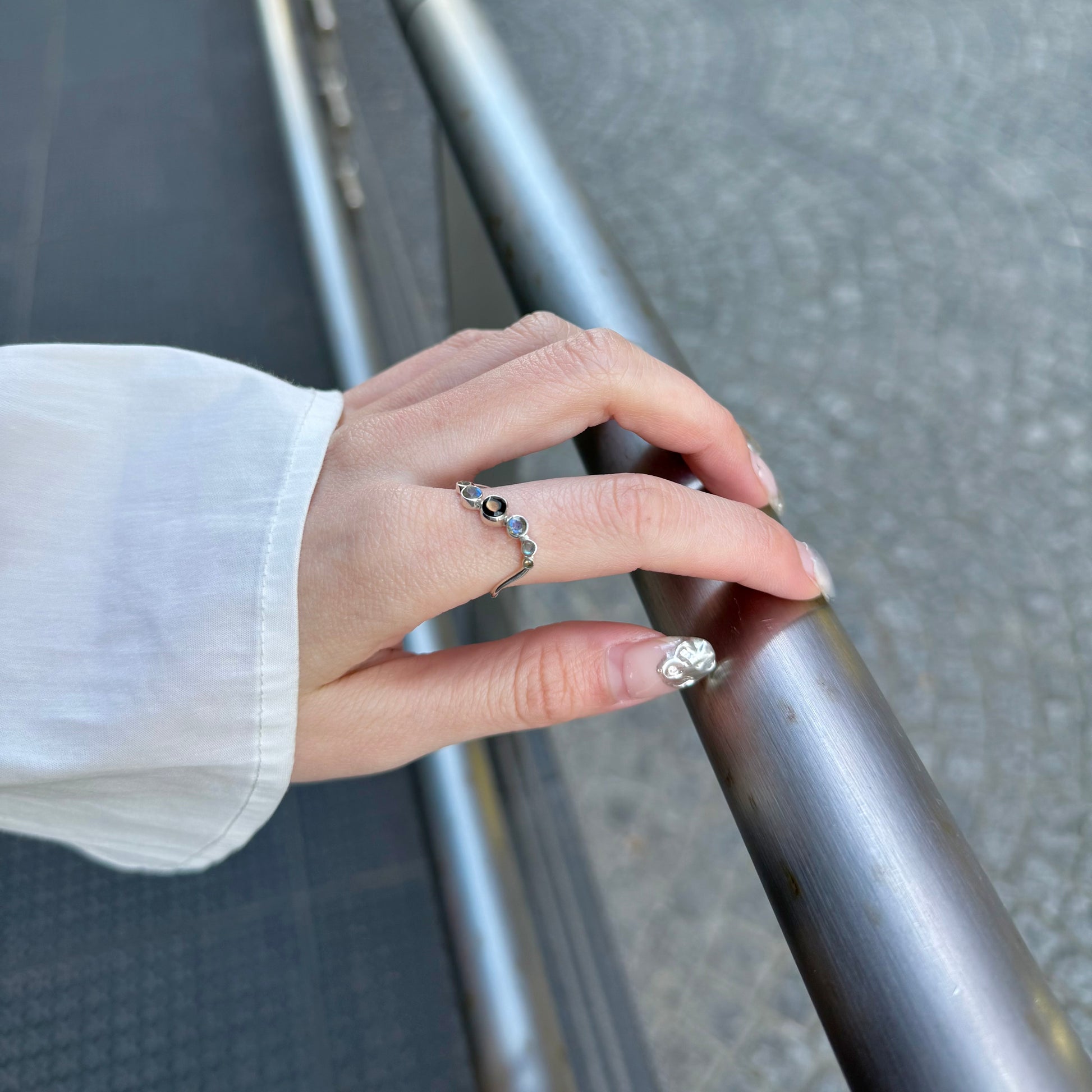 7つの天然石が連なったシルバーリング。