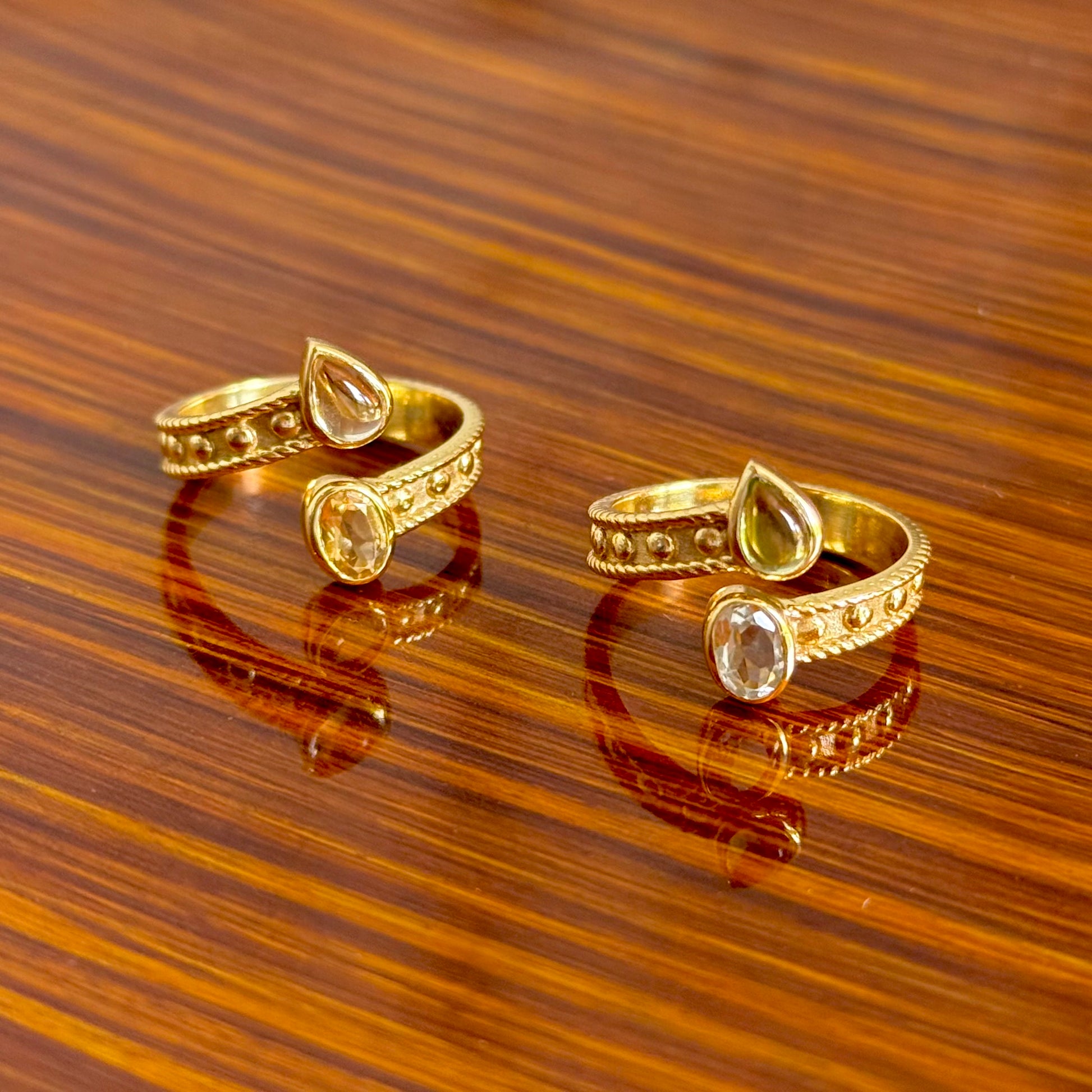 ゴールドカラーの2粒リング!