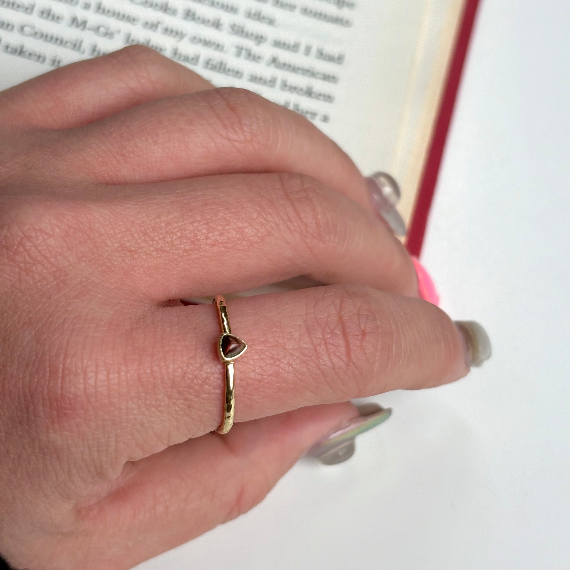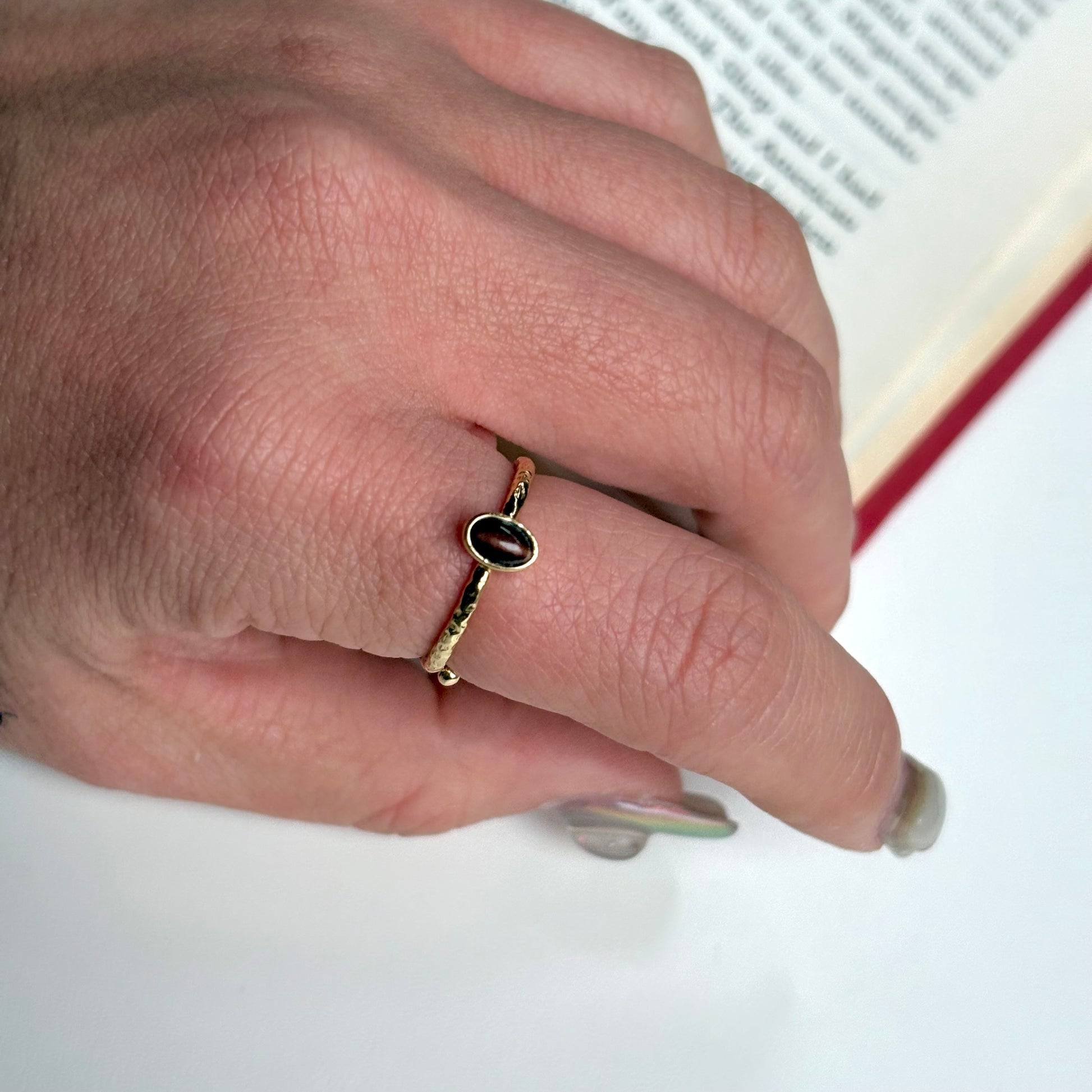 小粒の天然石がキュートなプチリング。