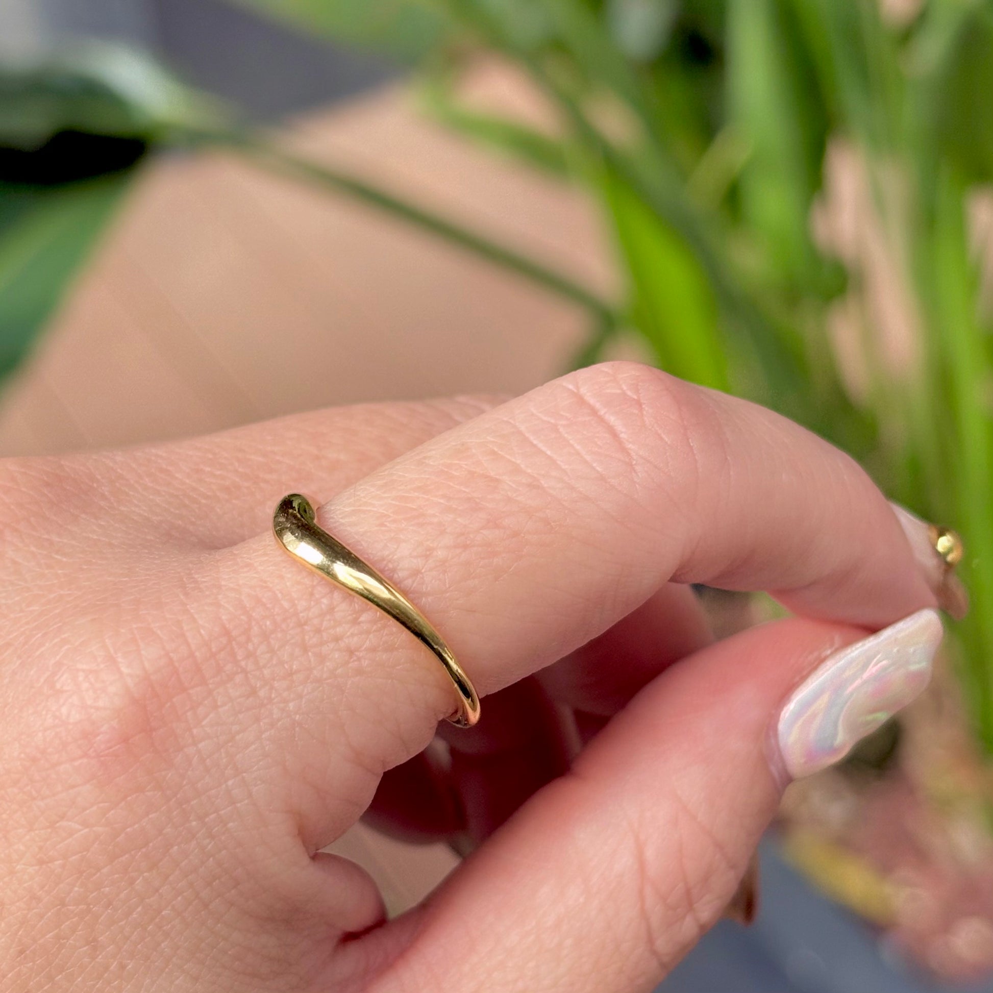 緩やかなウェーブのゴールドリング。