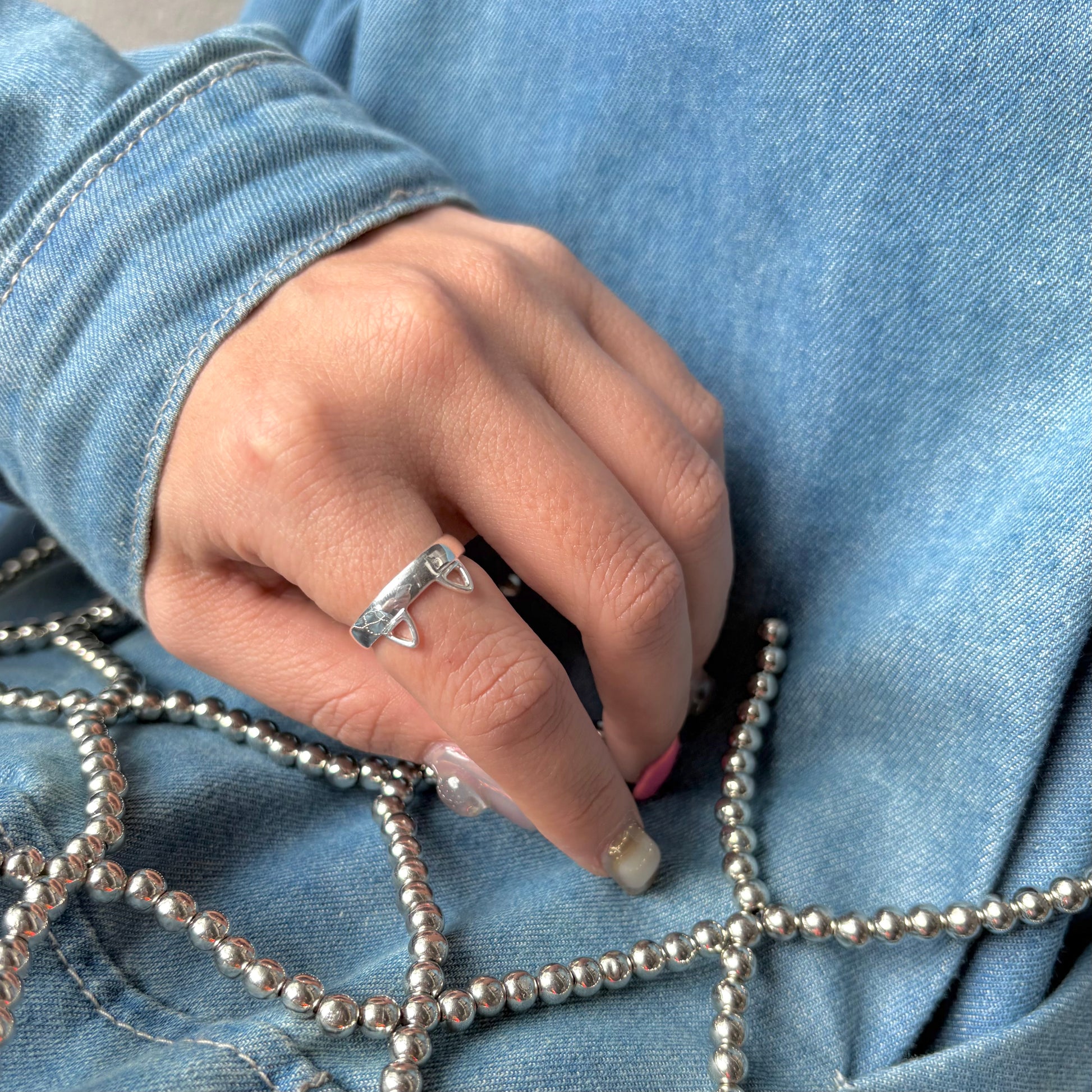 存在感のある猫耳モチーフのキュートなリング。
