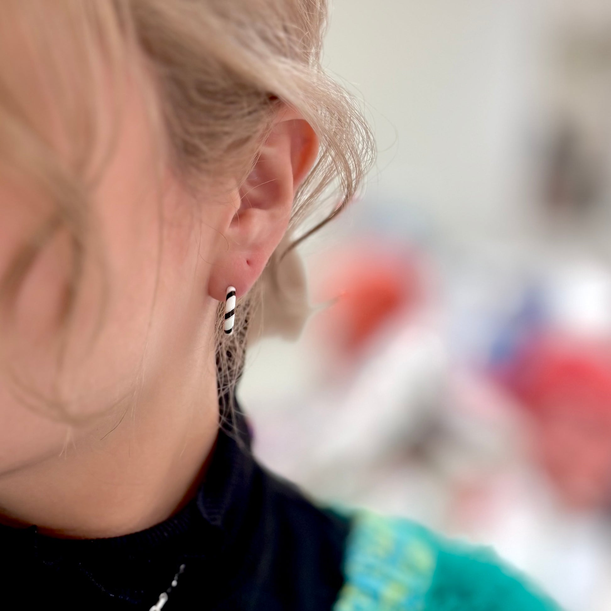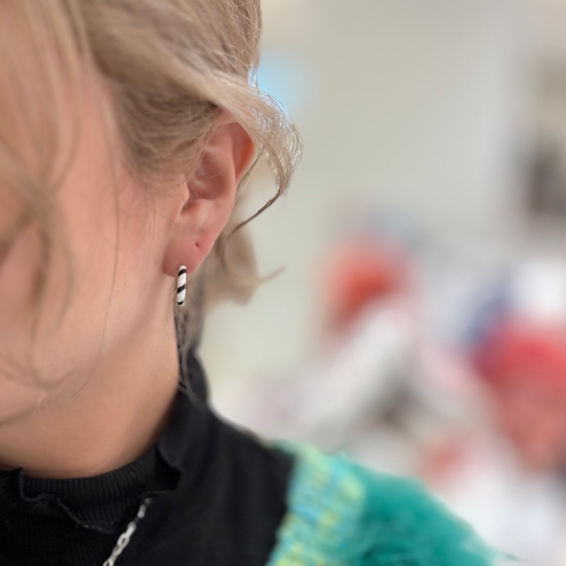 モノトーンのエナメルピアス。