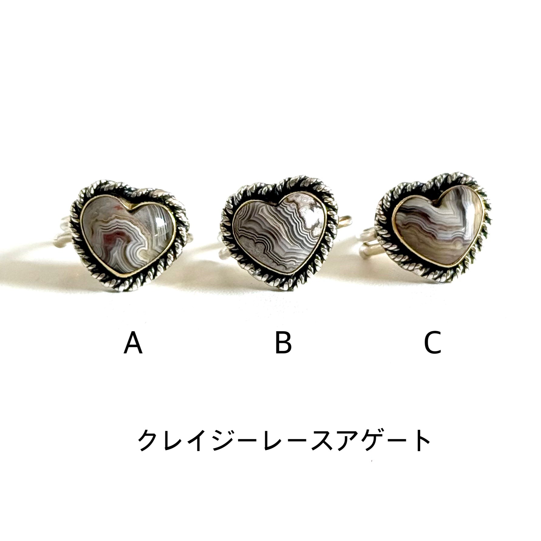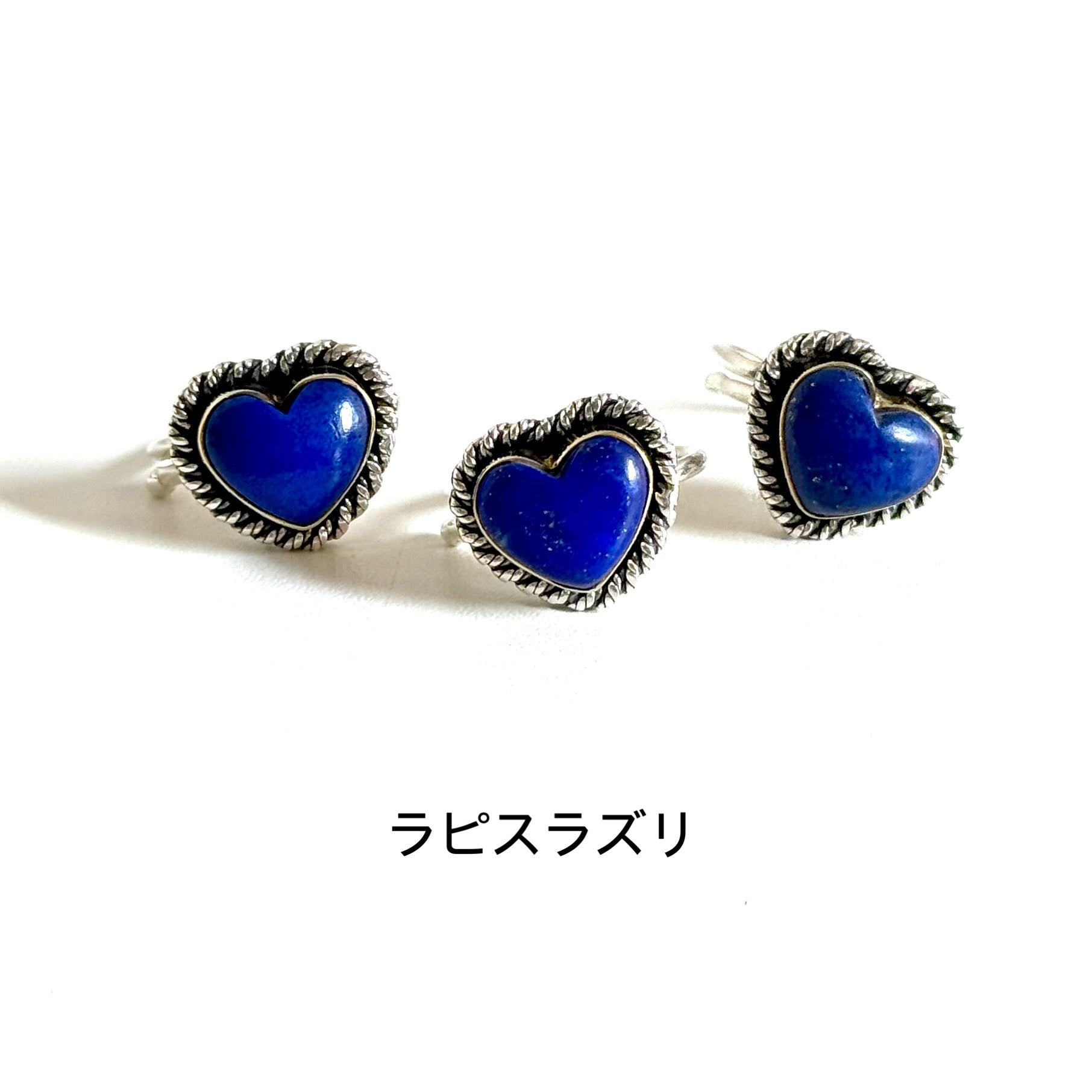 ハート型の天然石と石を囲む、バイカラーの装飾が目を引くデザイン。