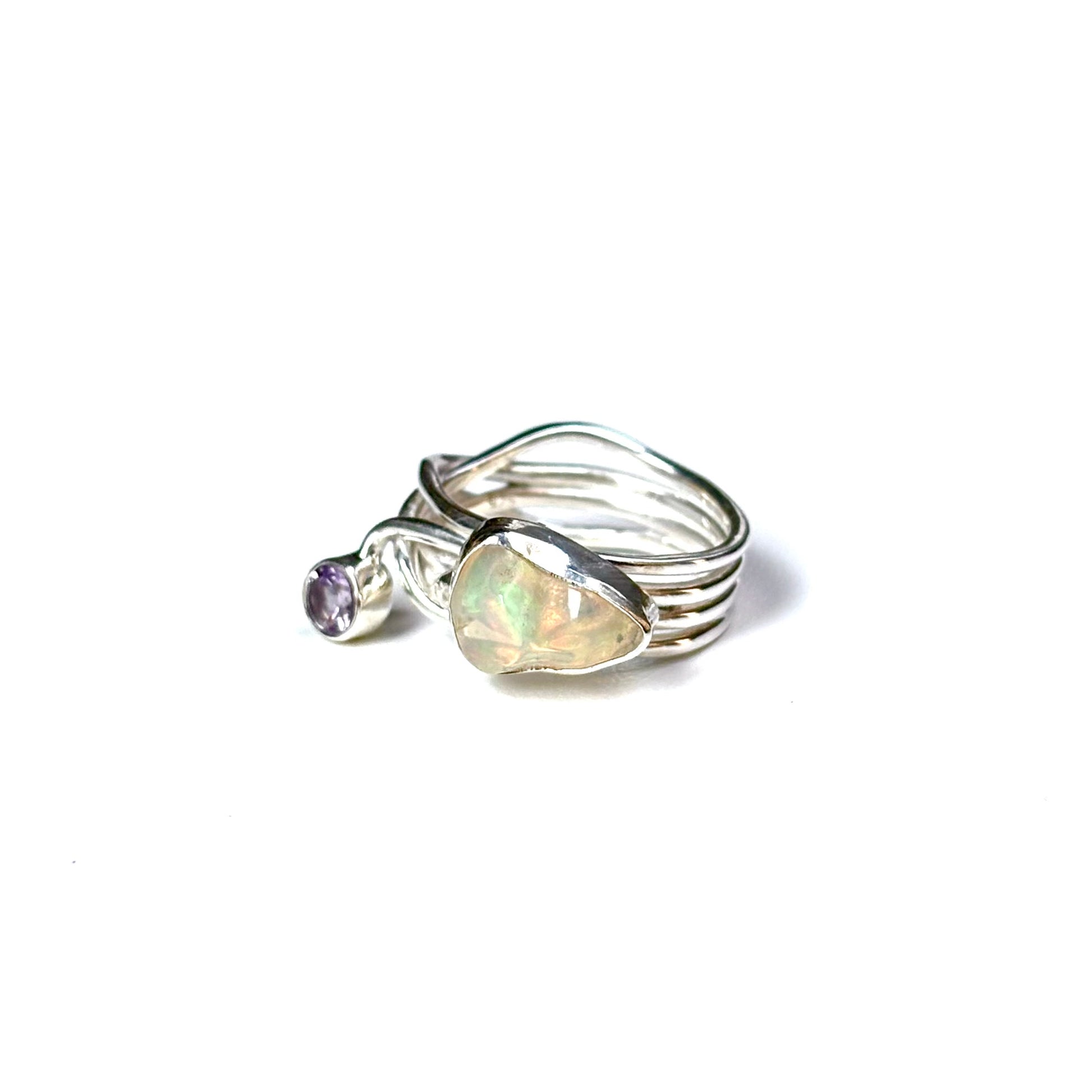 虹色に輝く遊色が魅力的な“ オパール “を使用。