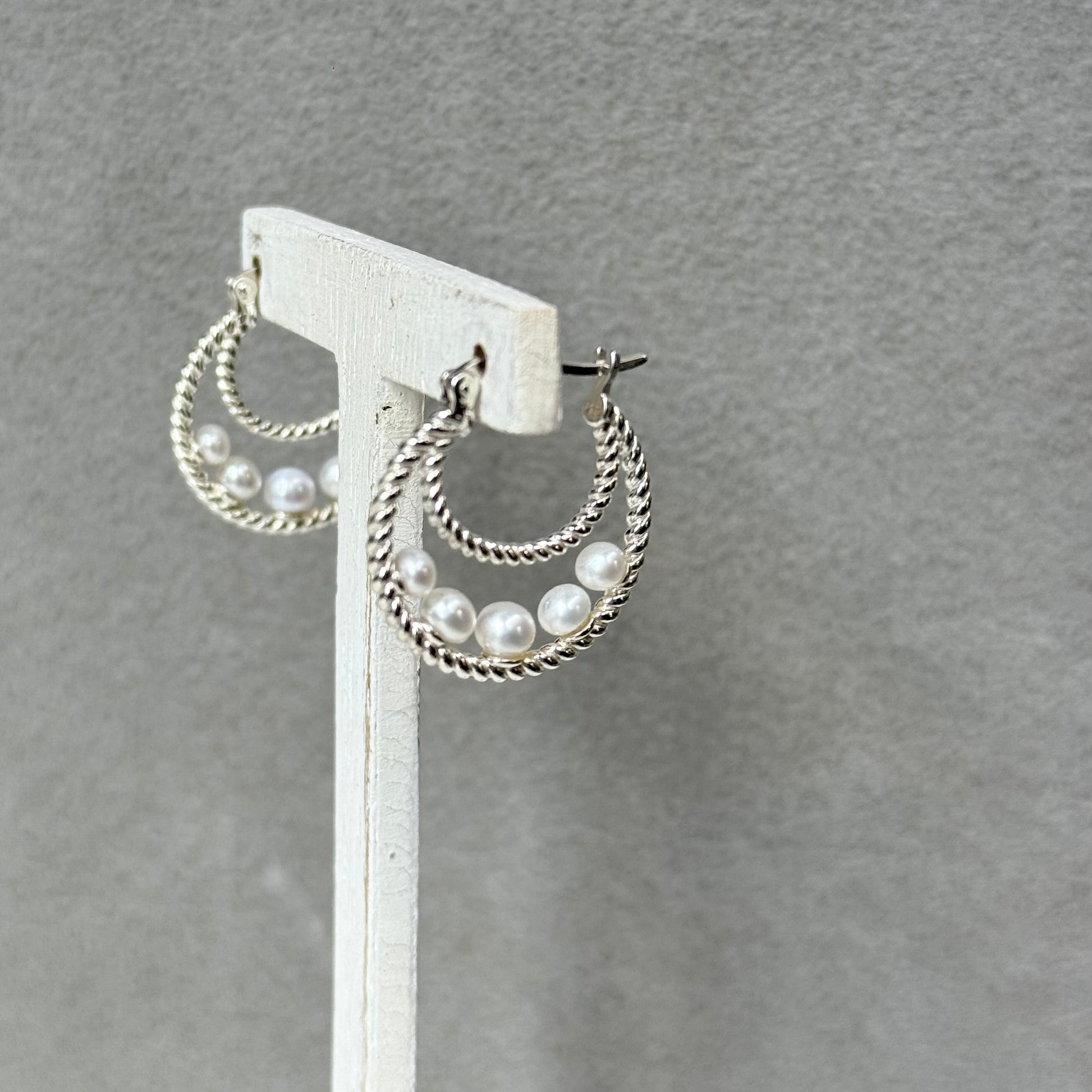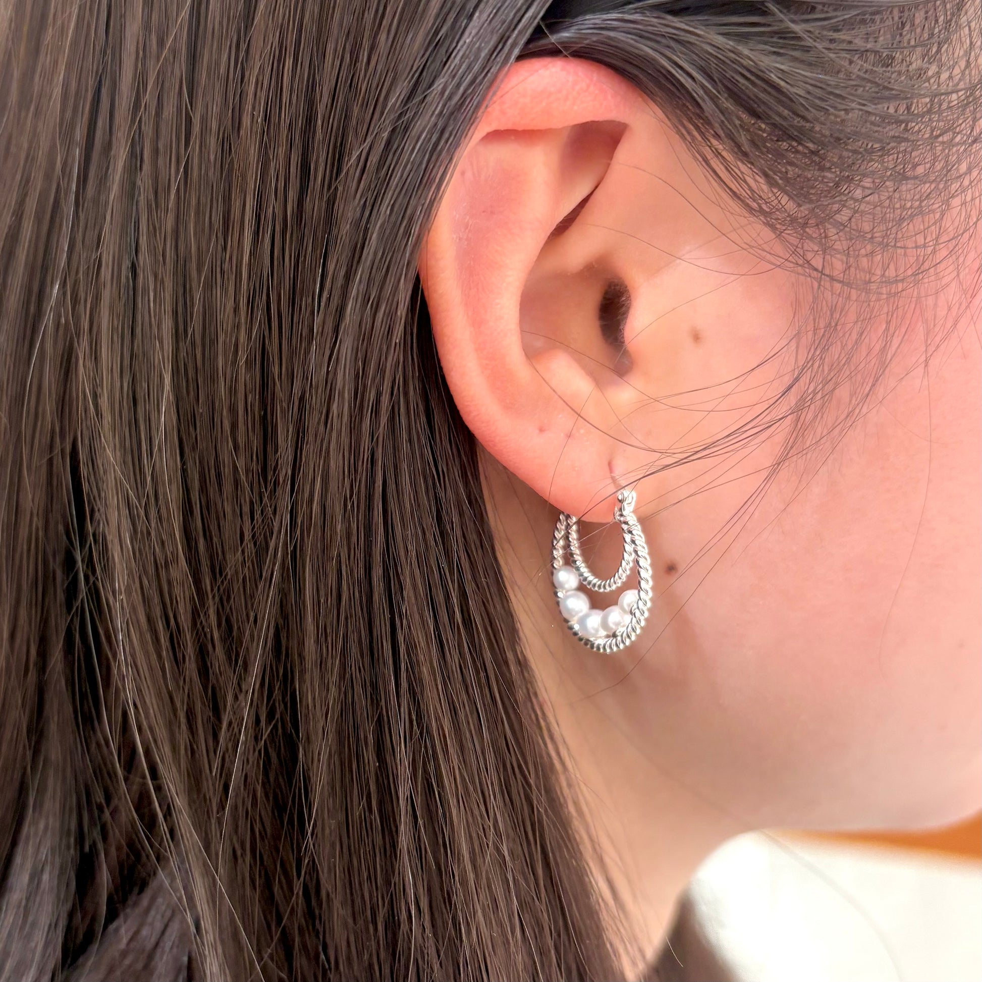 華やかさを演出する"パール"を使用したデザインピアス。
