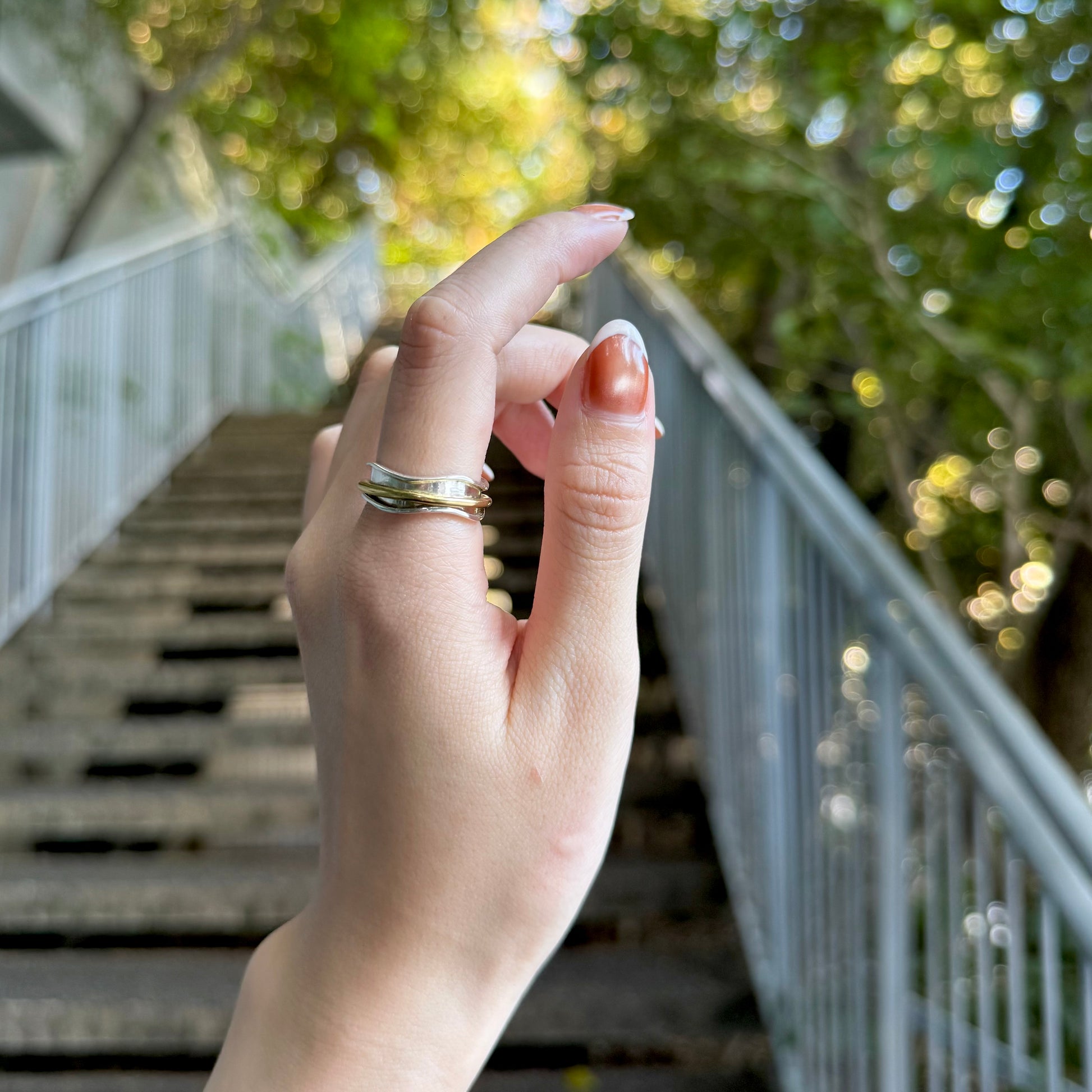 リングをいくつか重ねてるようにみえるデザイン。