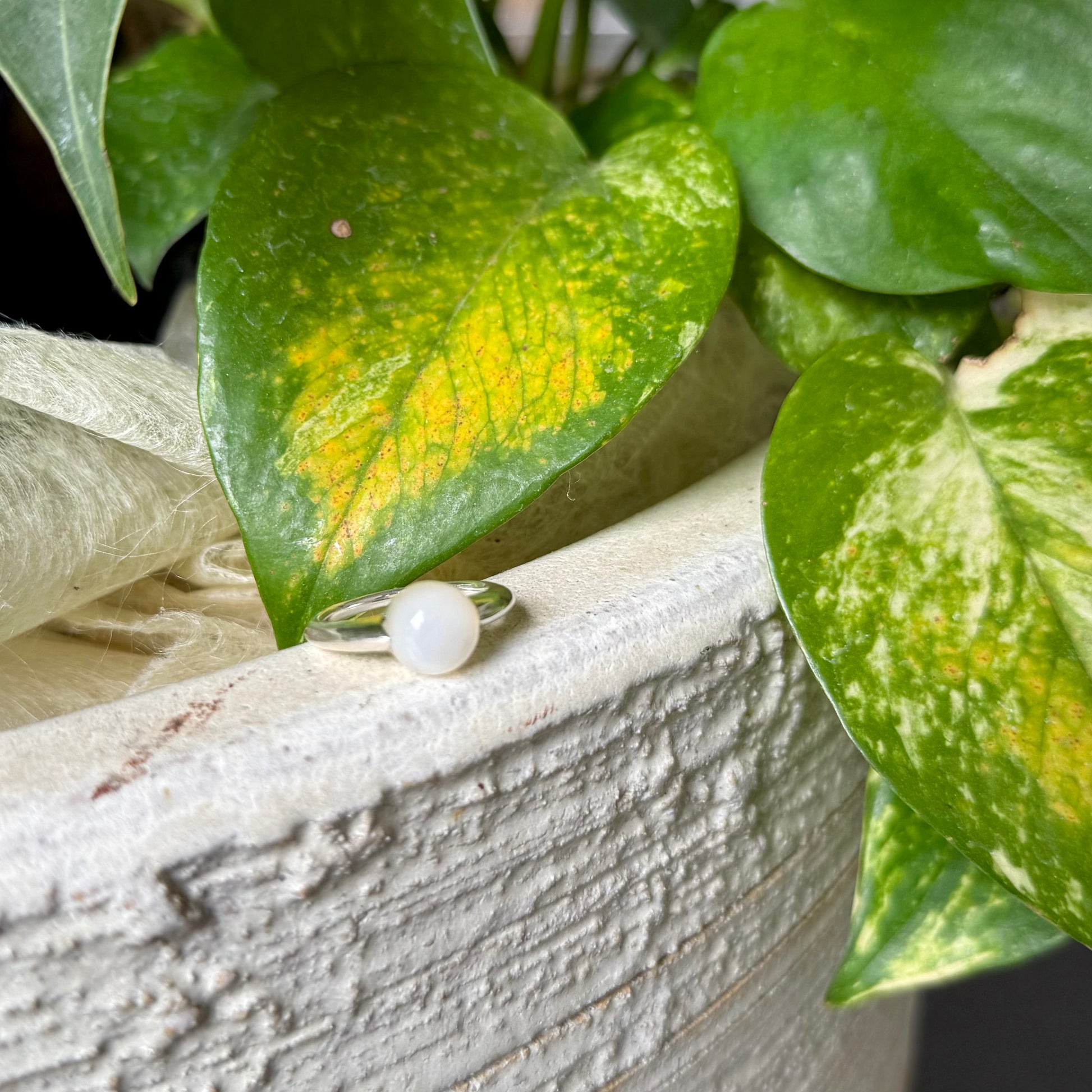 上品な印象のシェルが輝く1ストーンリング。