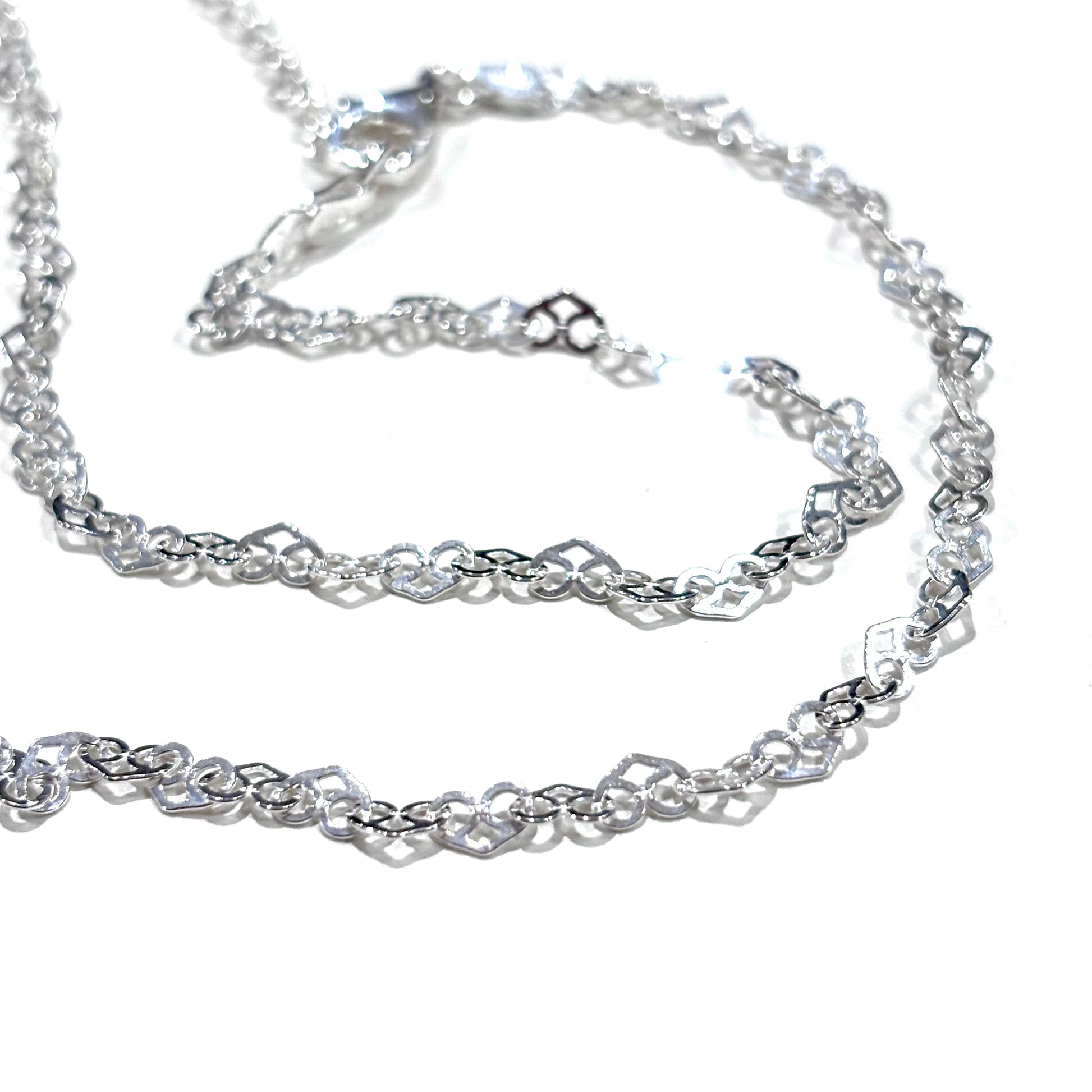 キラリと輝くハートがつながり合うシルバーチェーン。