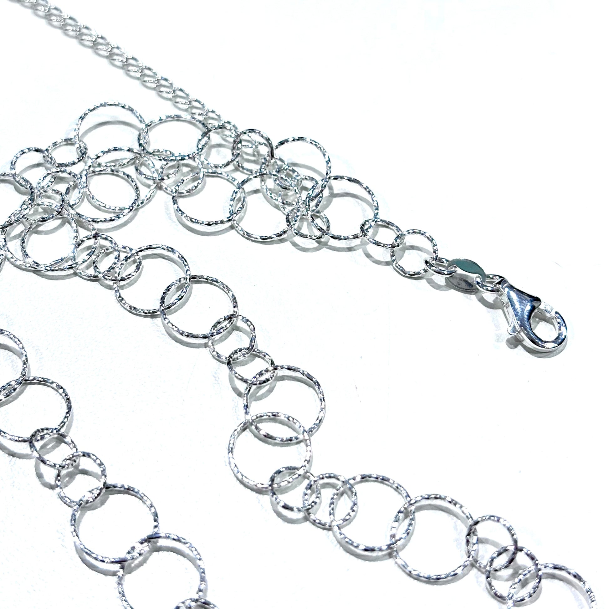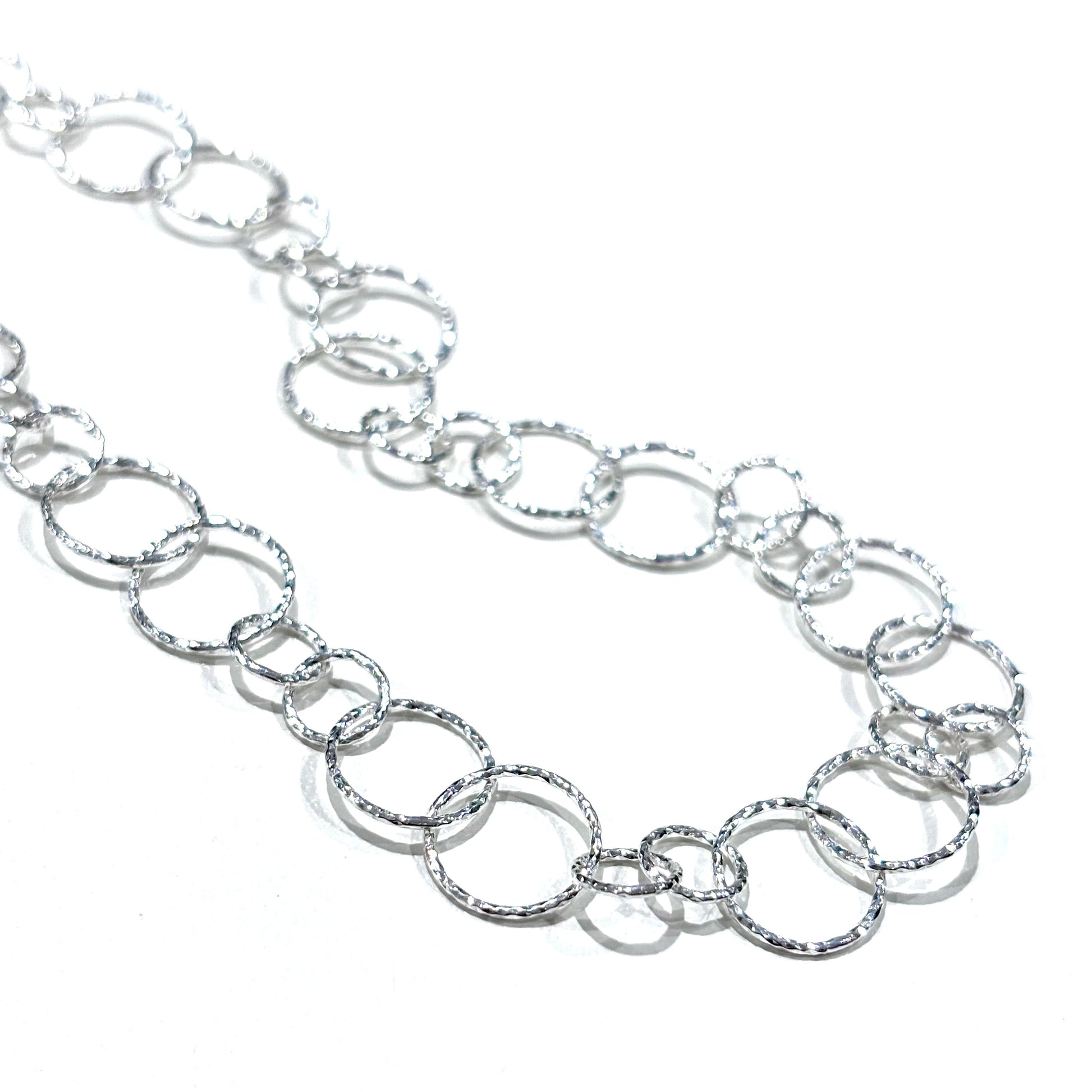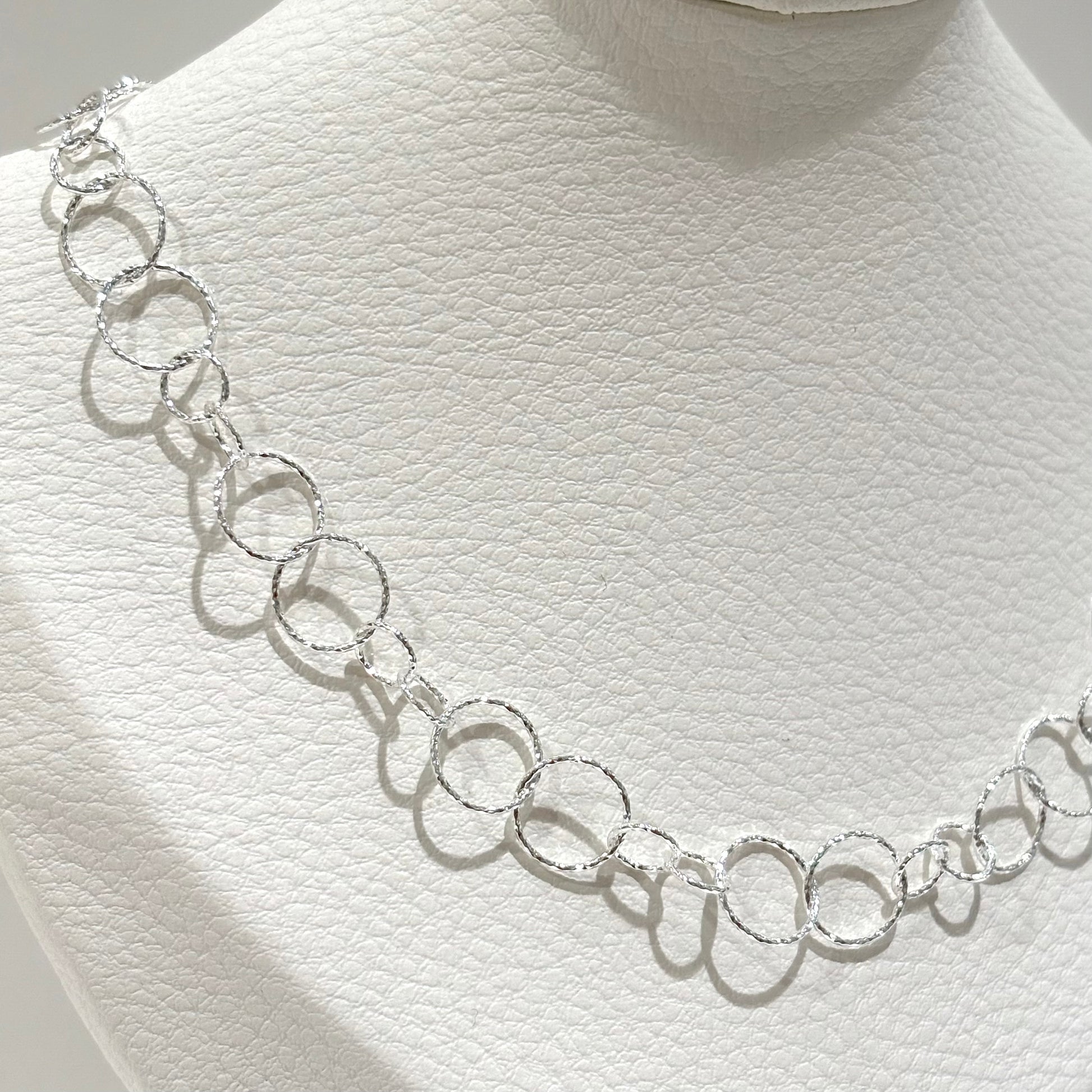 繊細に輝くサークルがつながり合うシルバーチェーン。