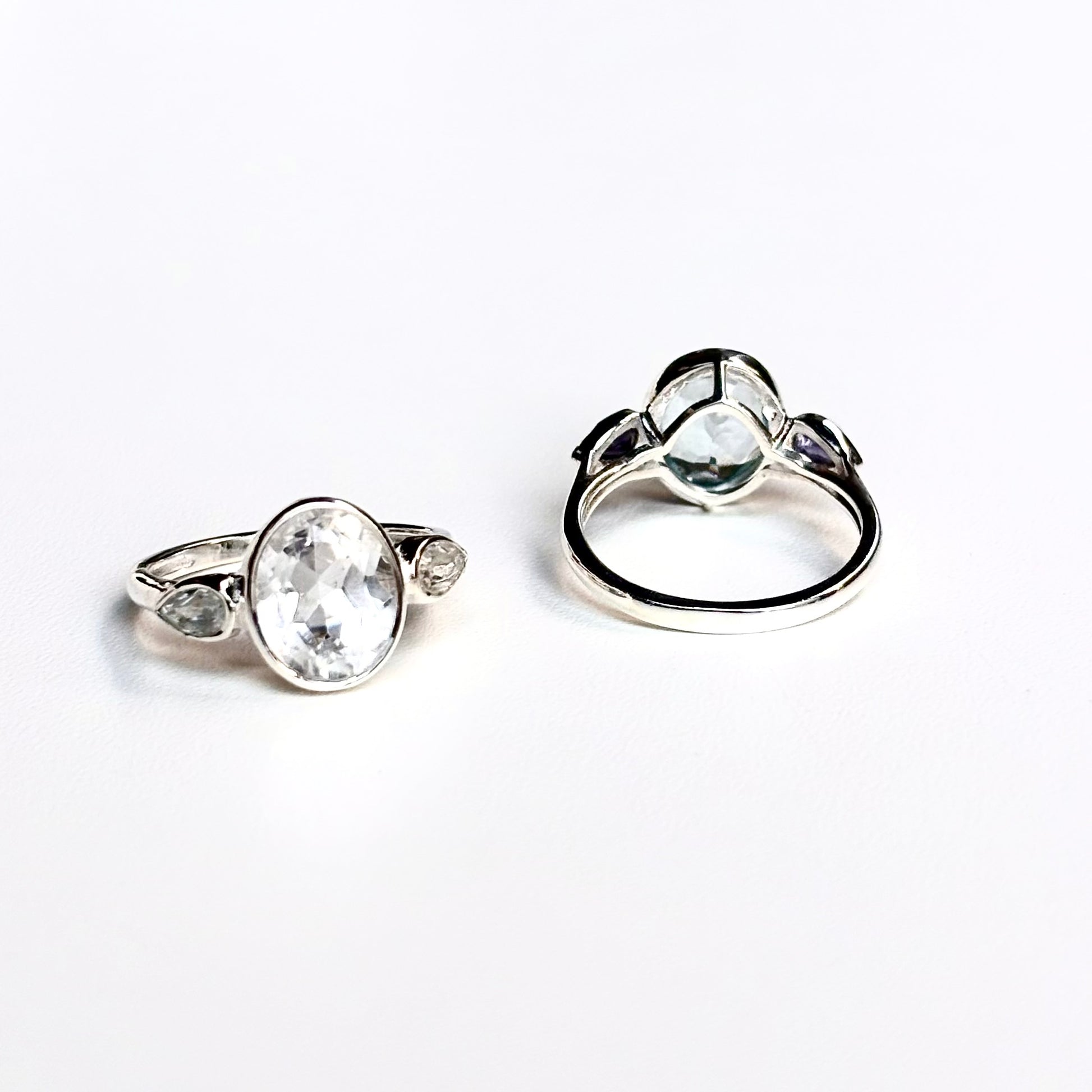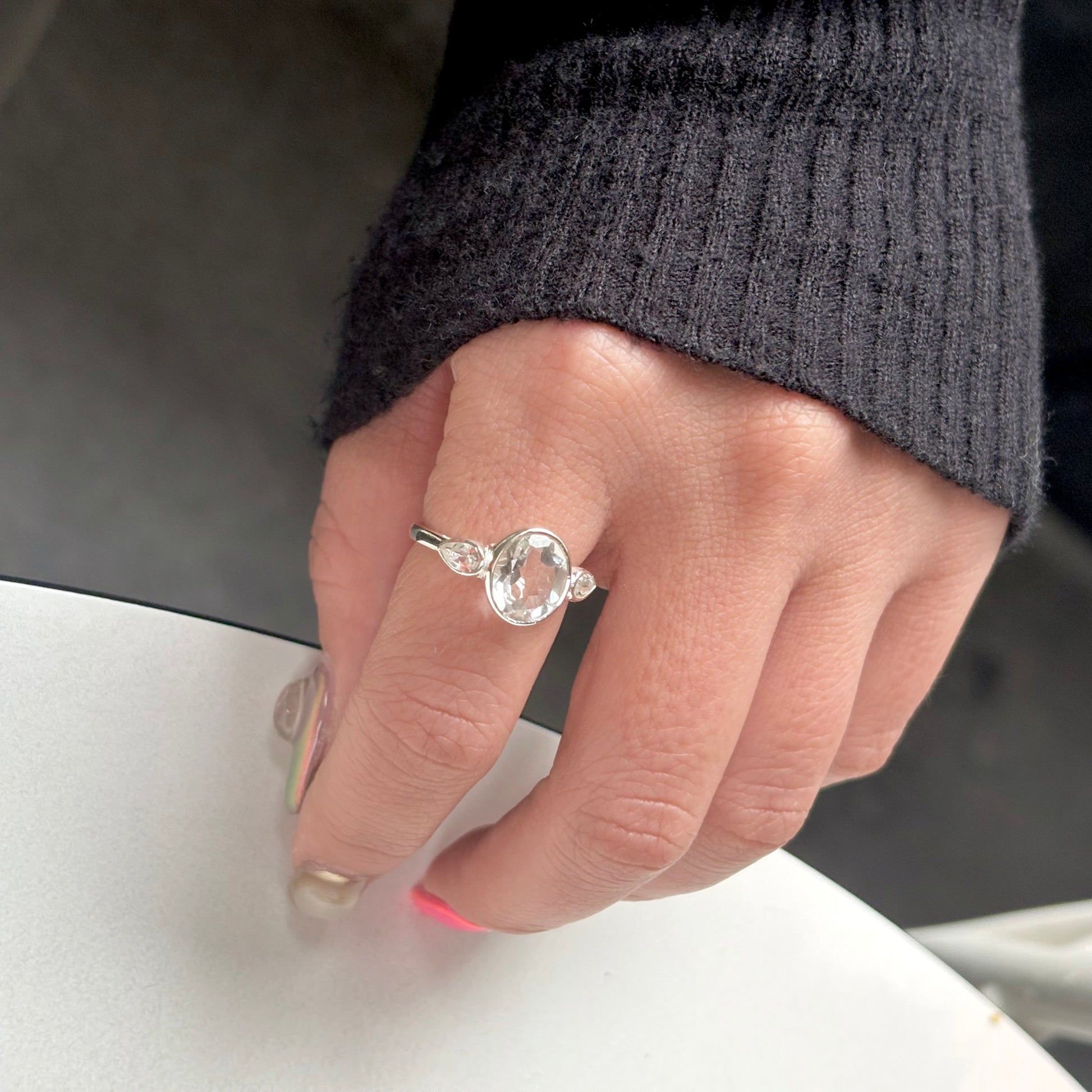 3石の天然石が美しく輝くデザインリング。