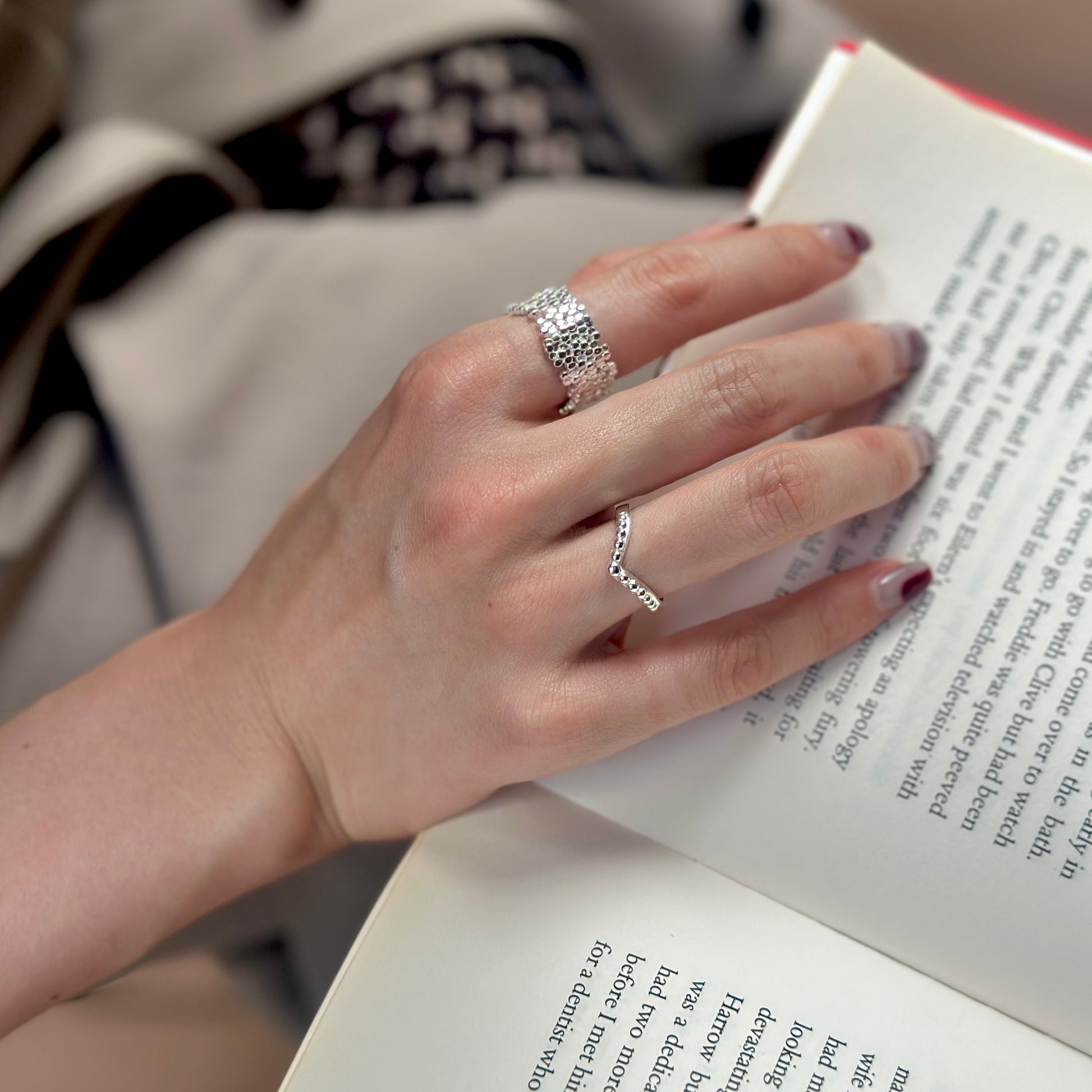 V字デザインがお指をスッキリと見せてくれるデザイン。