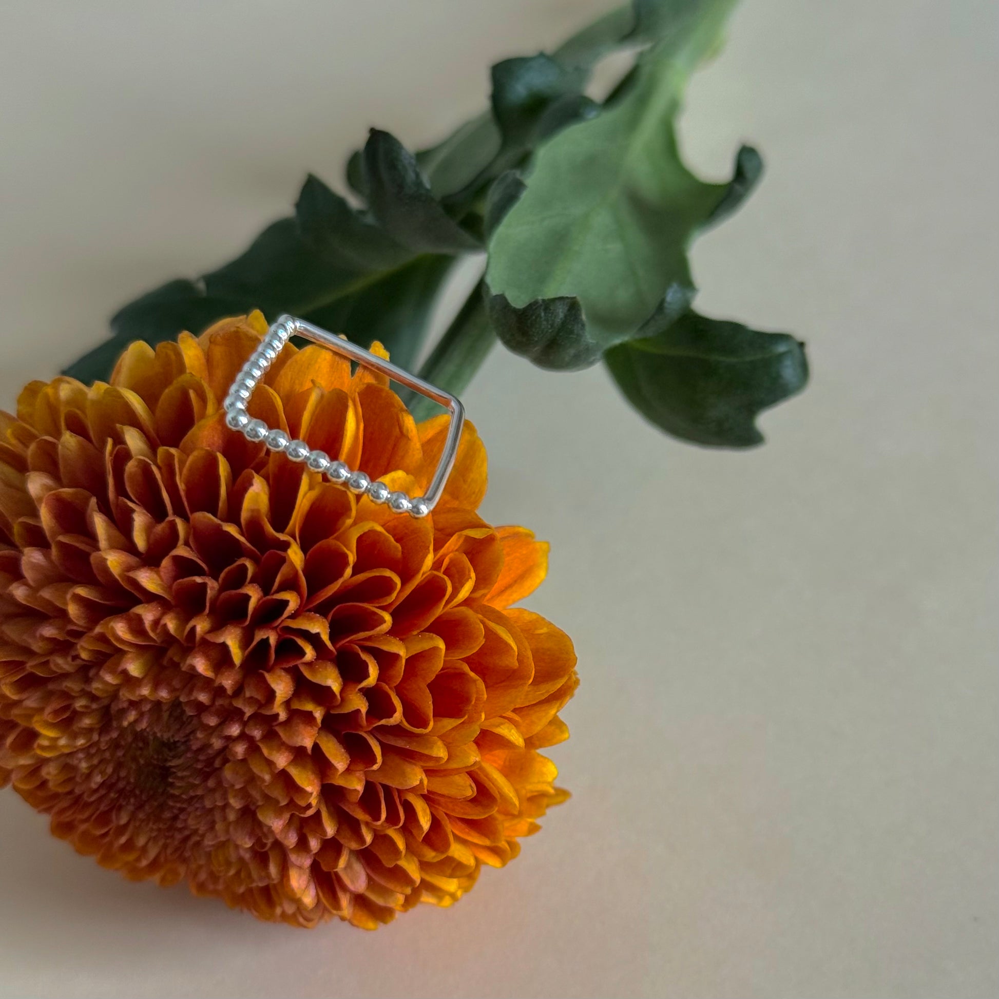 繊細なラインがさりげなくコーディネートを引き立てるシルバーリング。