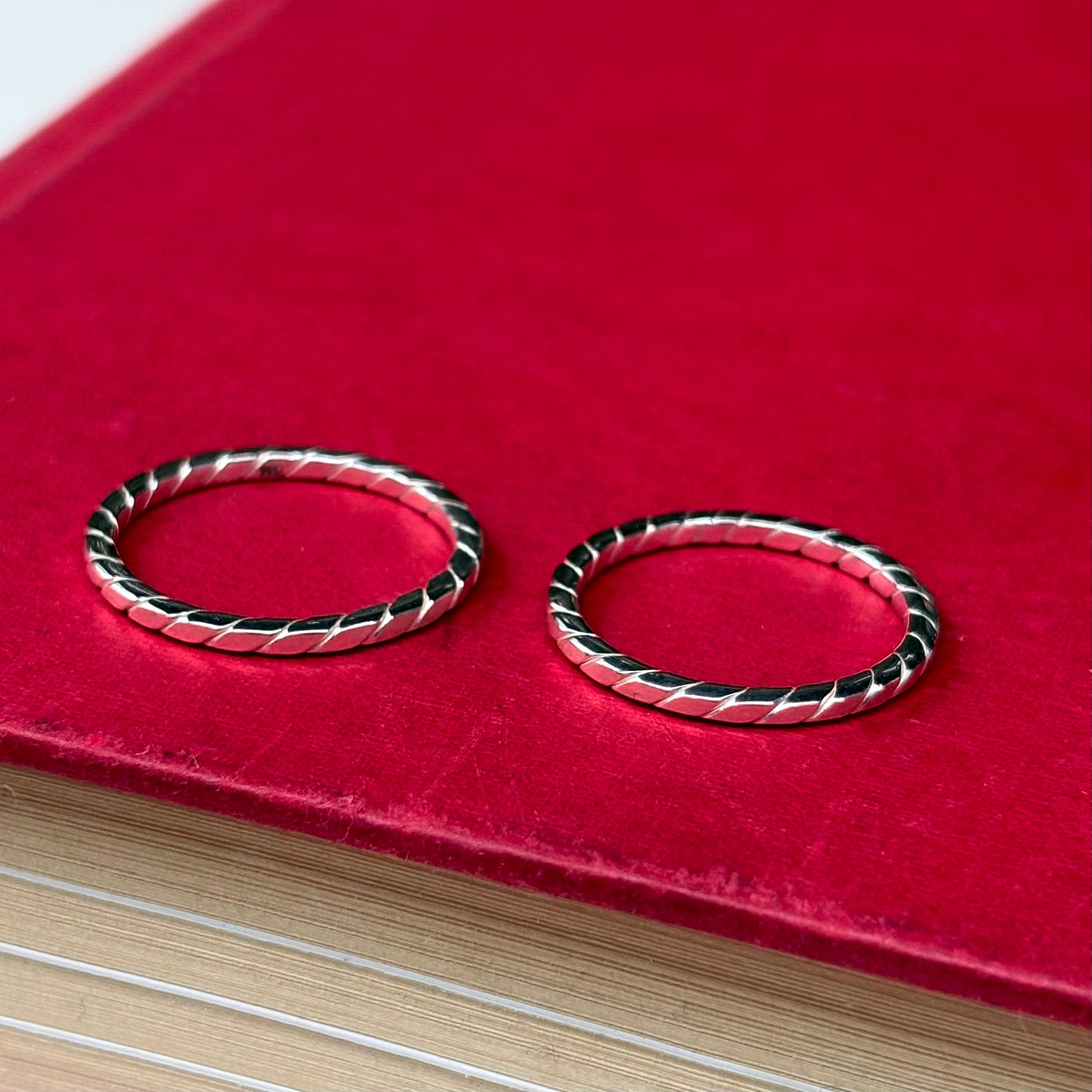 繊細なラインがさりげなくコーディネートを引き立てるシルバーリング。