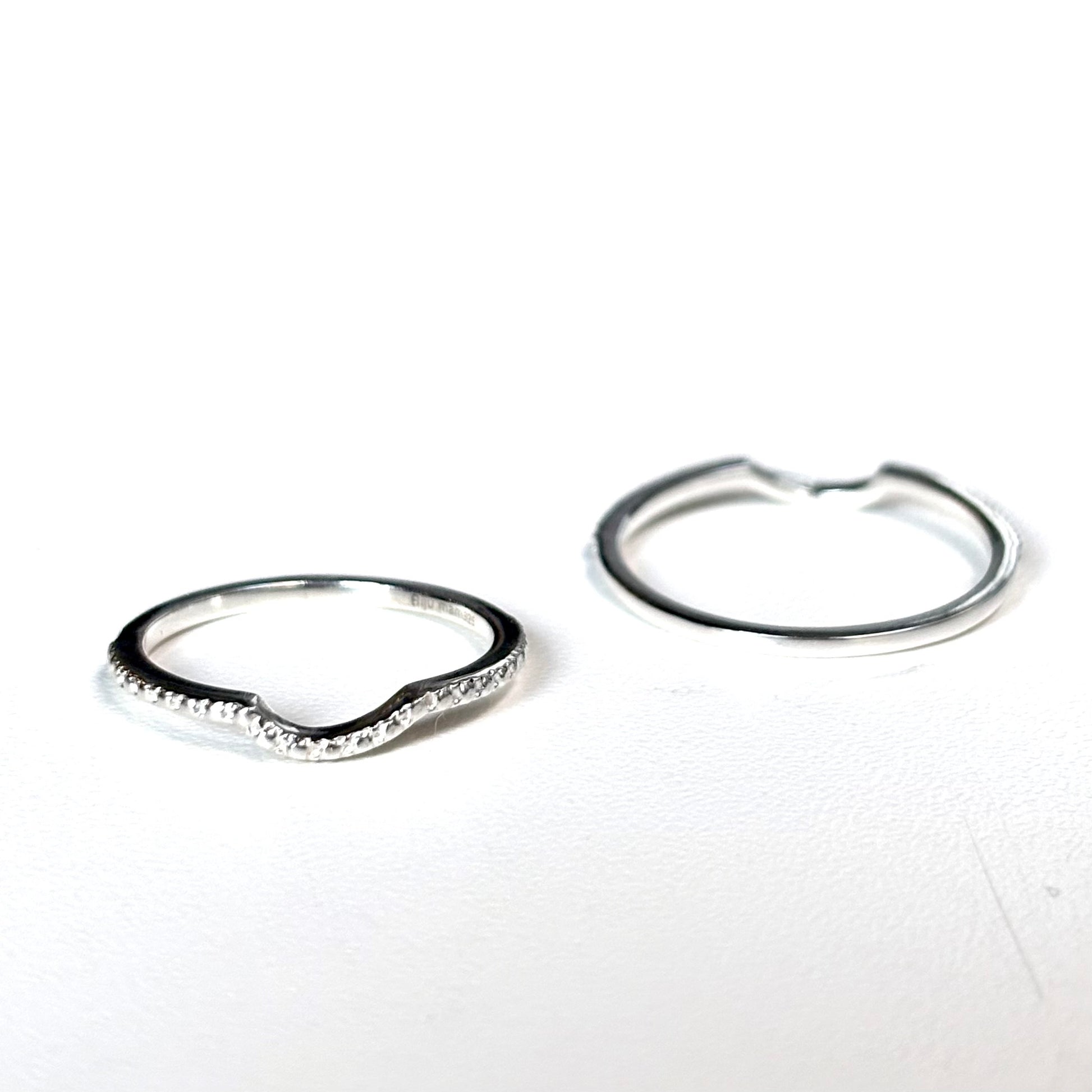 繊細なラインがさりげなくコーディネートを引き立てるシルバーリング。